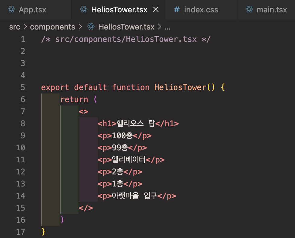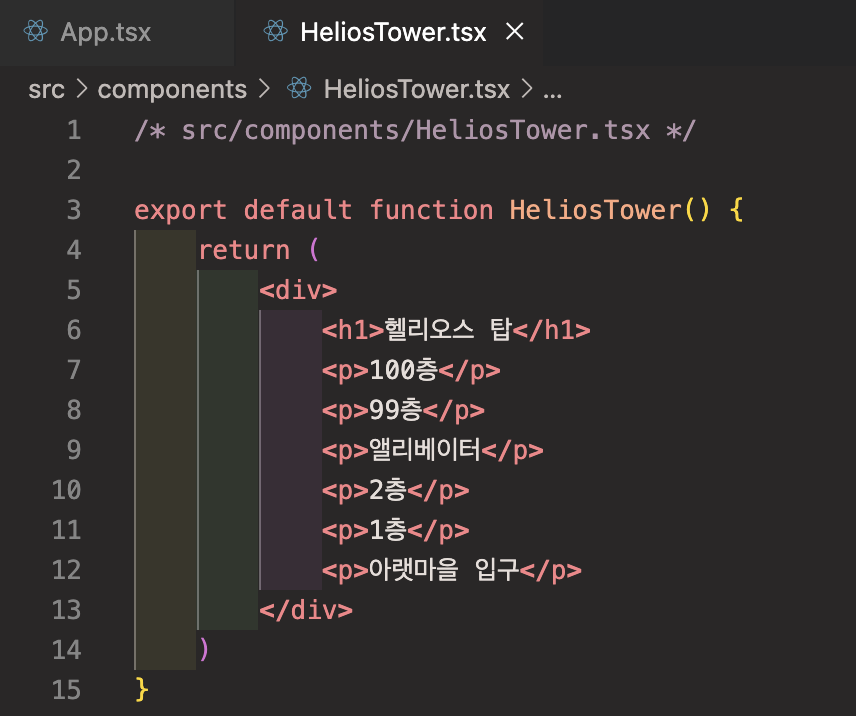 이제 HeliosTower.tsx 컴포넌트를 App.tsx에서 불러오면,